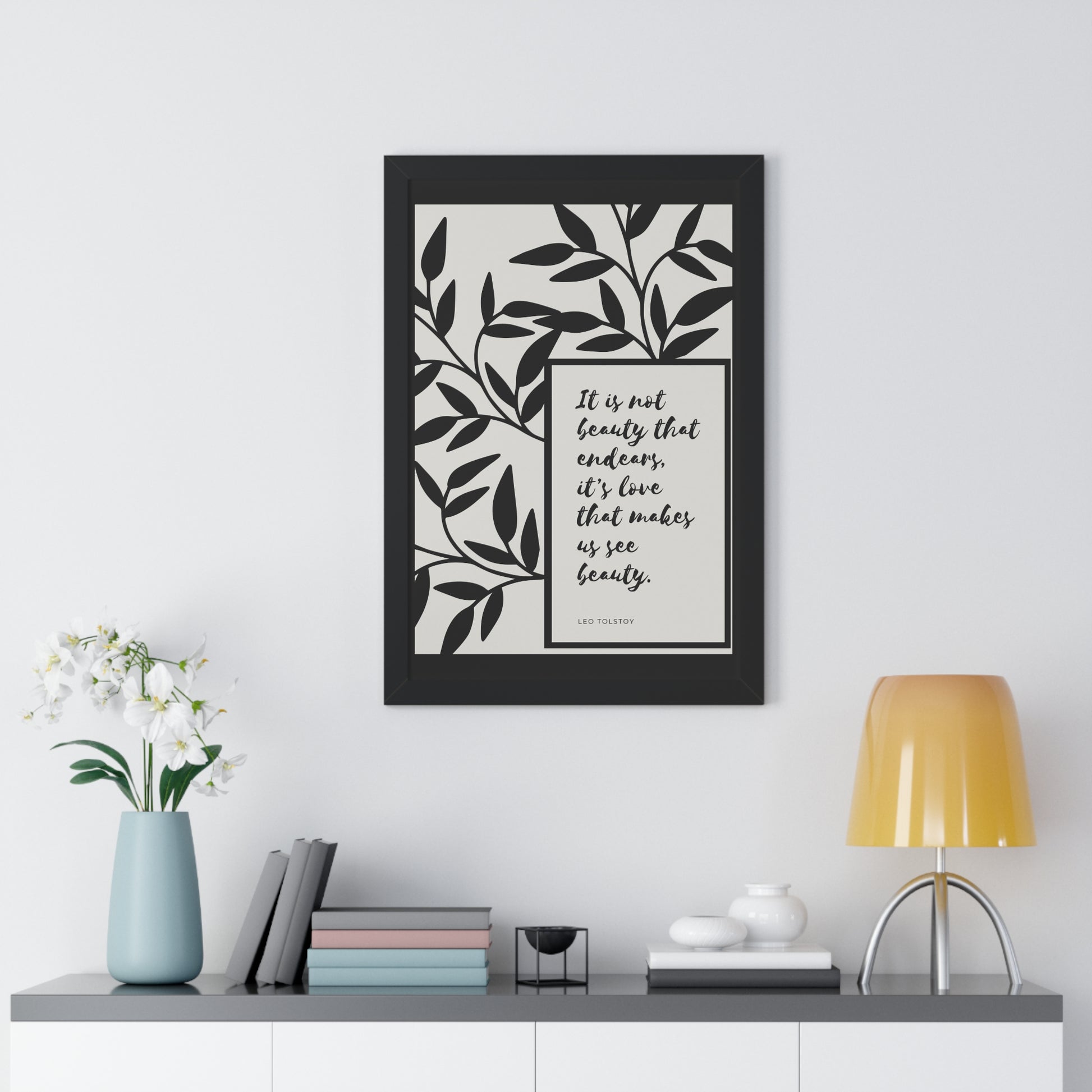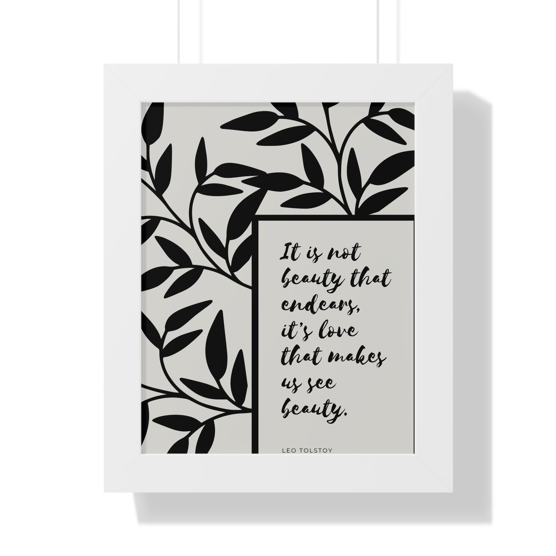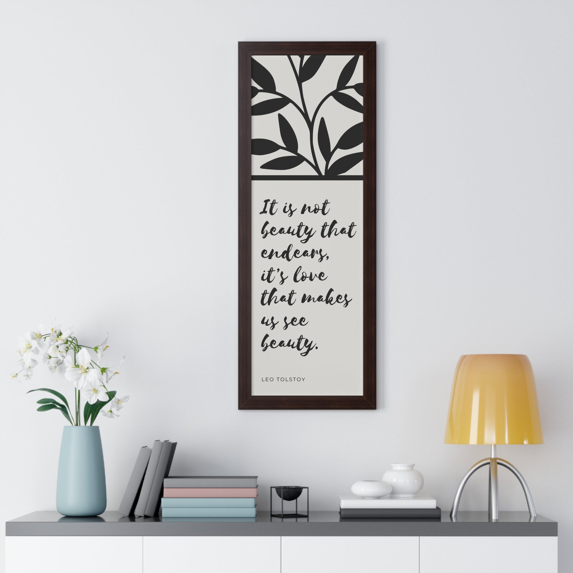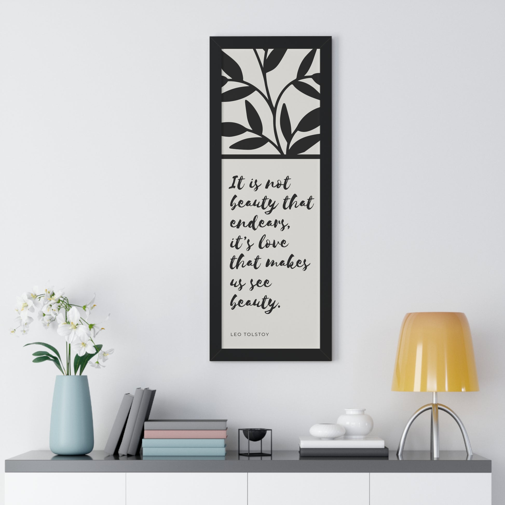 A quote from Leo Tolstoy artfully surrounded by abstract leaves to bring some inspiration about beauty. Showcase this in your home, office, or anywhere you are. It will elevate your office, home and any space you choose to install it in. As with all our art, this comes ready to hang.