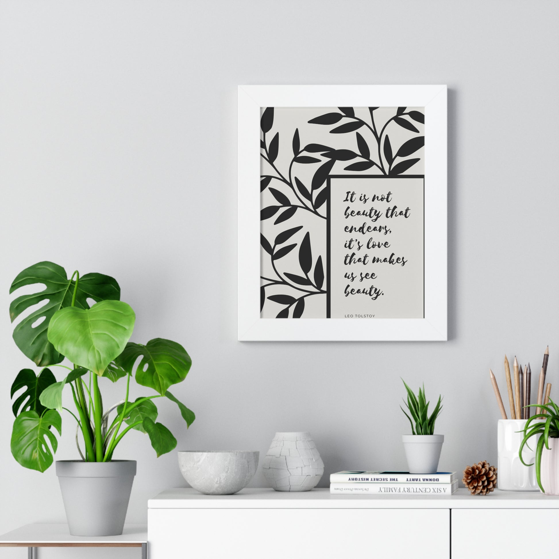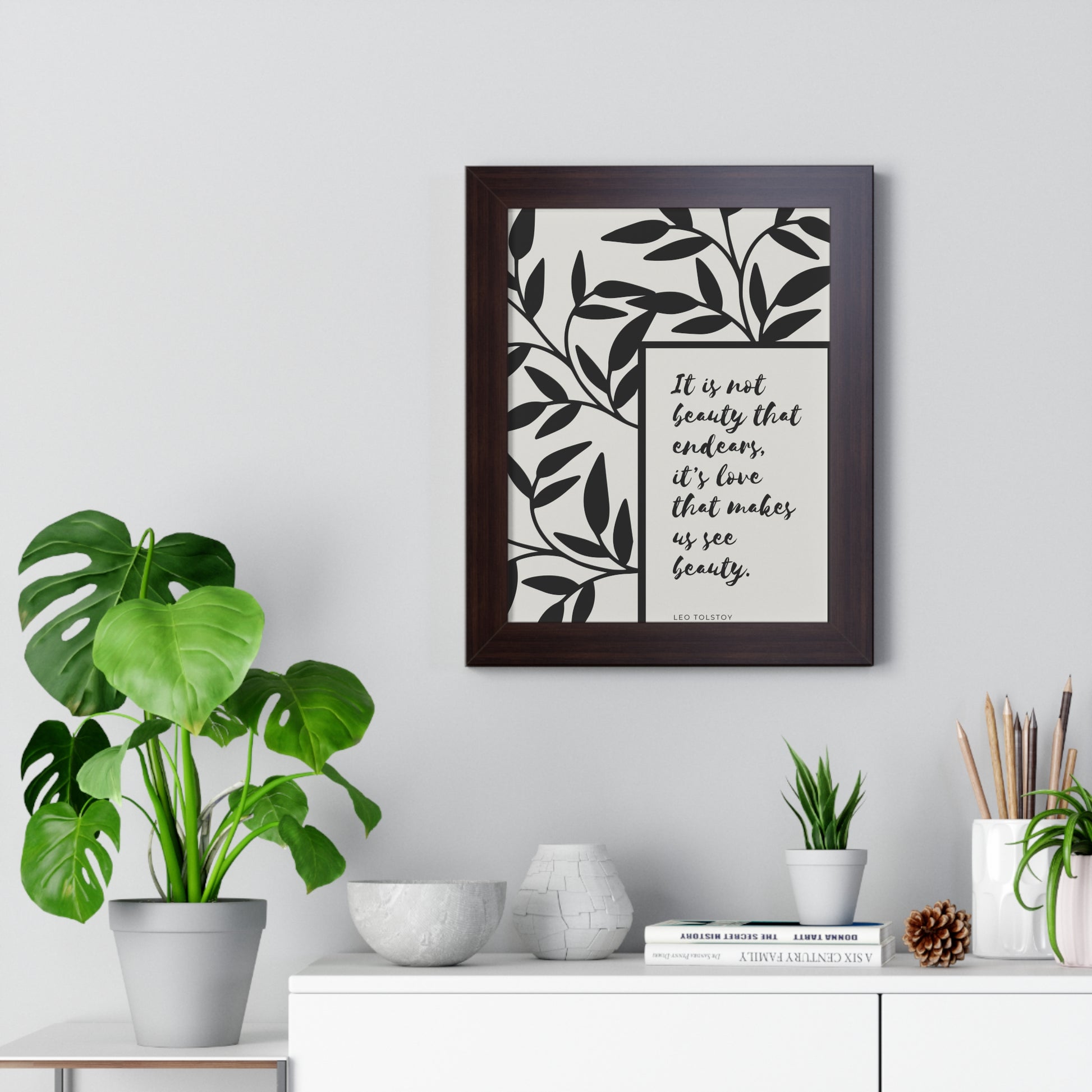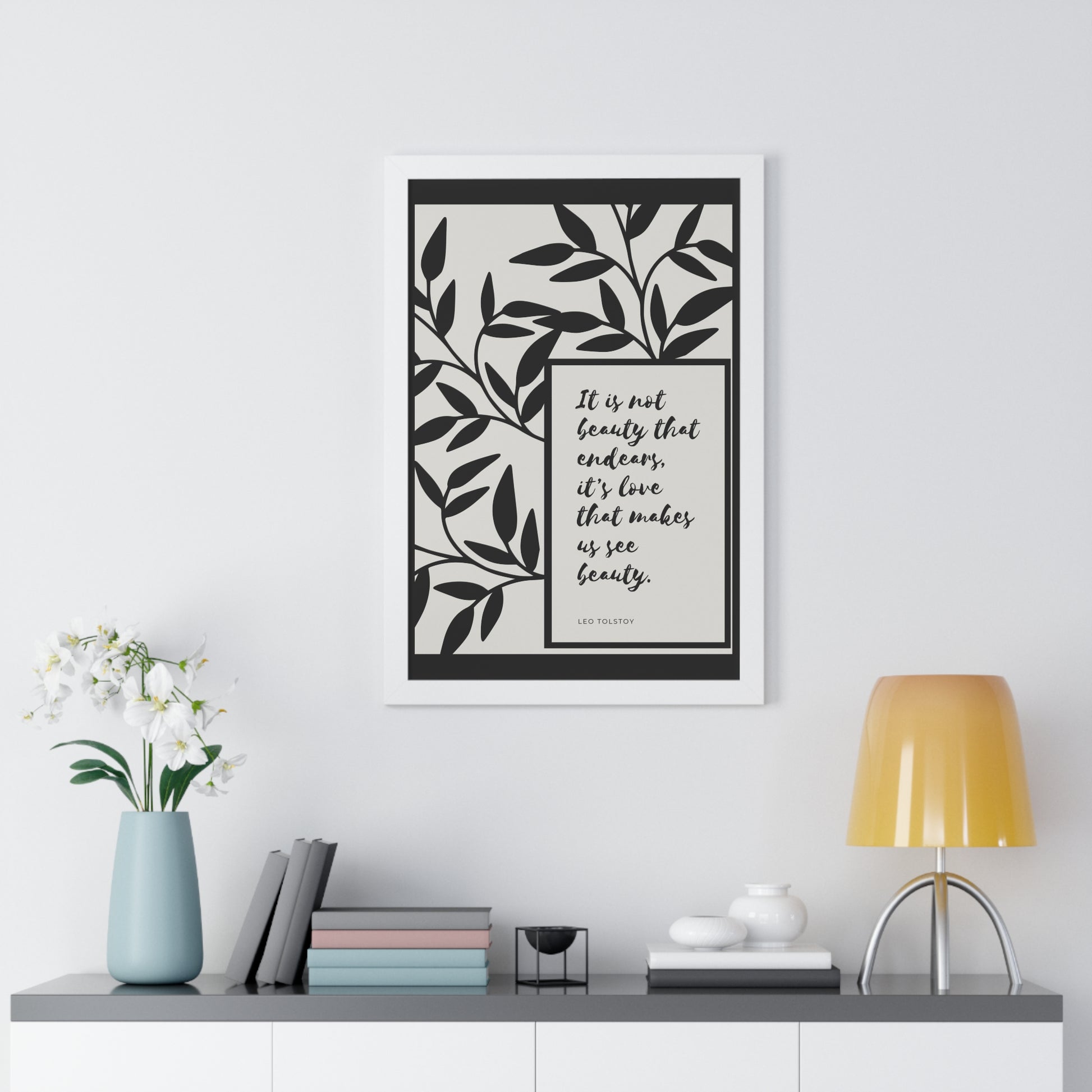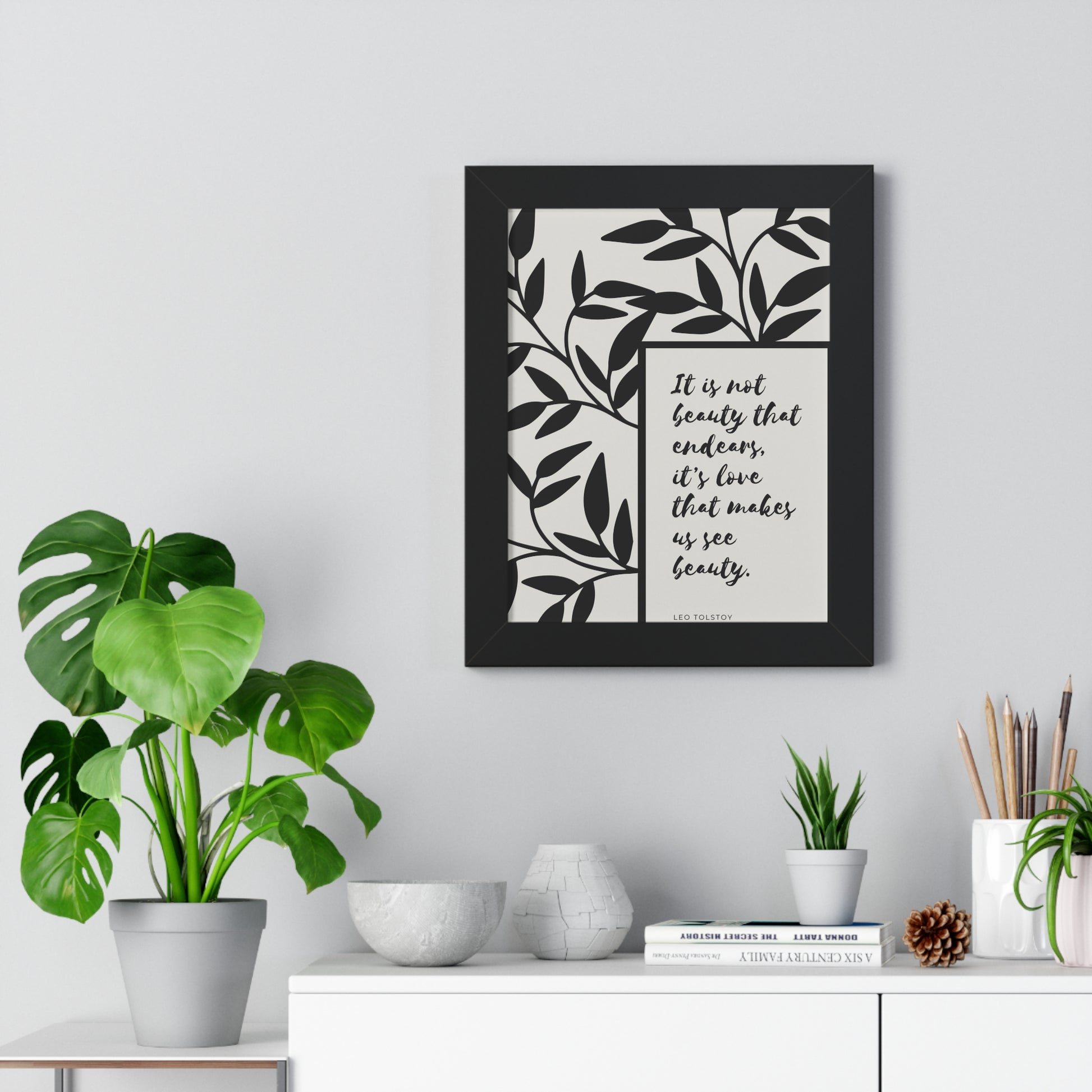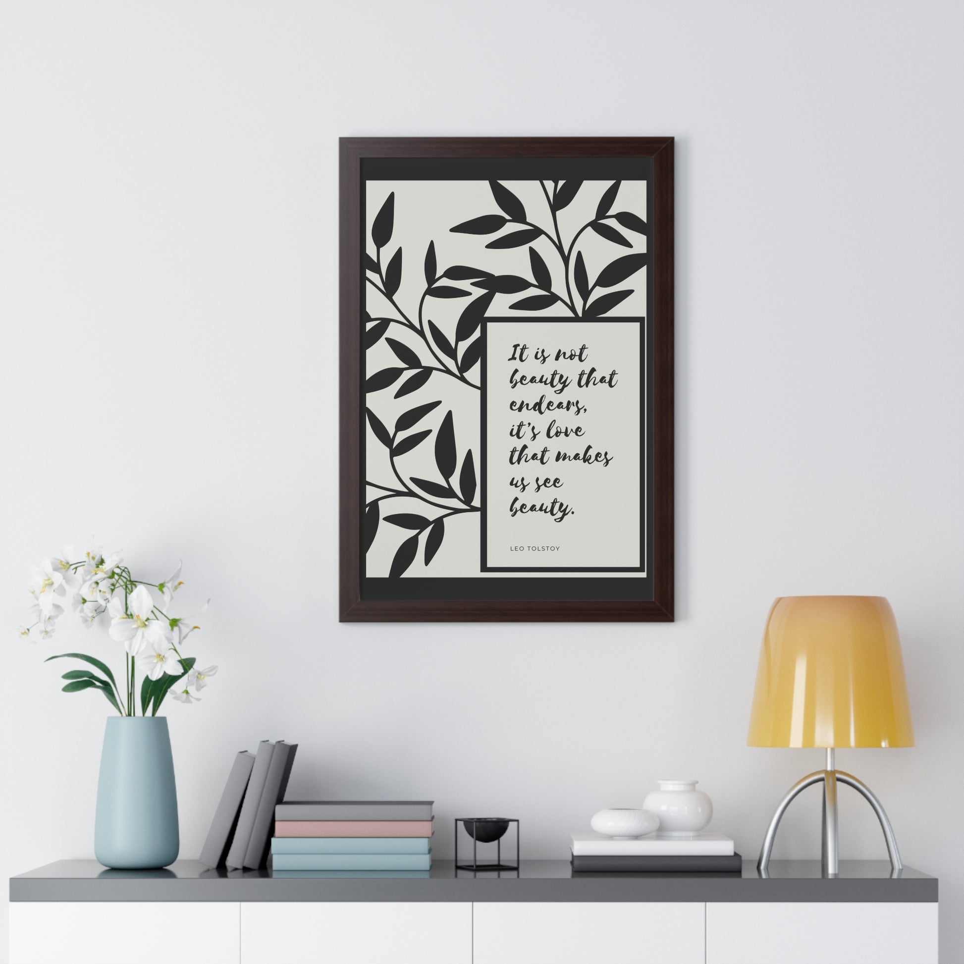 A quote from Leo Tolstoy artfully surrounded by abstract leaves to bring some inspiration about beauty. Showcase this in your home, office, or anywhere you are. It will elevate your office, home and any space you choose to install it in. As with all our art, this comes ready to hang.